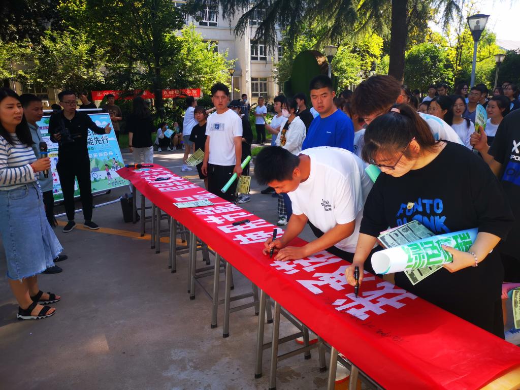 6月15日上午,学校后勤保障处、学生处、生态环境工程学院、旅游管理学院在三校区组织开展了“绿色低碳,节能先行”节能宣传周暨全国低碳日“节能减排我承诺”师生签名活动,倡导师生争当节能使者,共创生态文明。