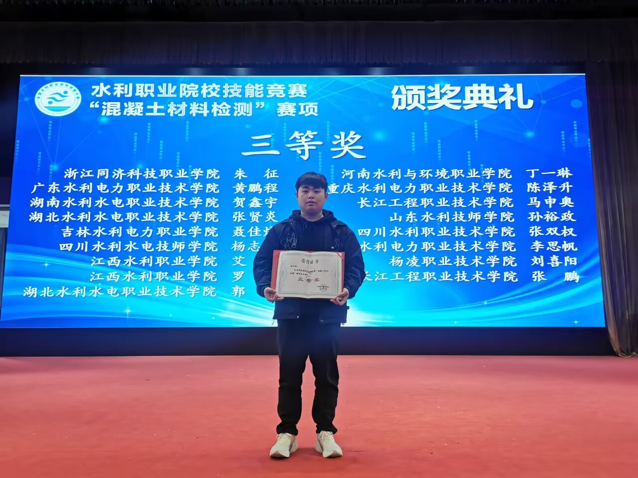 3月22日至25日,由中国水利教育协会主办的全国水利职业院校技能竞赛“混凝土材料检测”赛项(试点赛)在黄河水利职业技术学院举办,我校代表队分别获一等奖、三等奖。