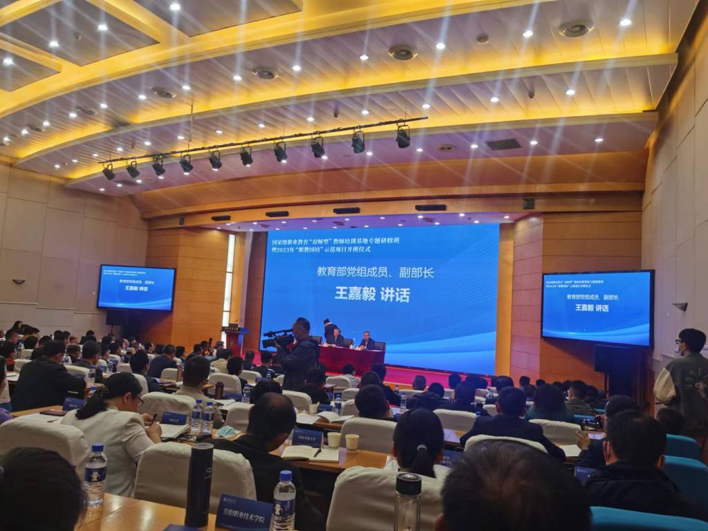 4月12日至14日,教育部国家级职业教育“双师型”教师培训基地专题研修班暨2023年“职教国培”示范项目开班活动在北京交通大学举行。教育部党组成员、副部长王嘉毅出席会议并讲话,教育部教师工作司副司长黄小华、国家教育行政学院学术委员会主任邢晖作主题报告。我校党委书记王周锁、人事教师处处长张英杰参加会议,人事教师处、生物工程学院相关人员线上参加会议。