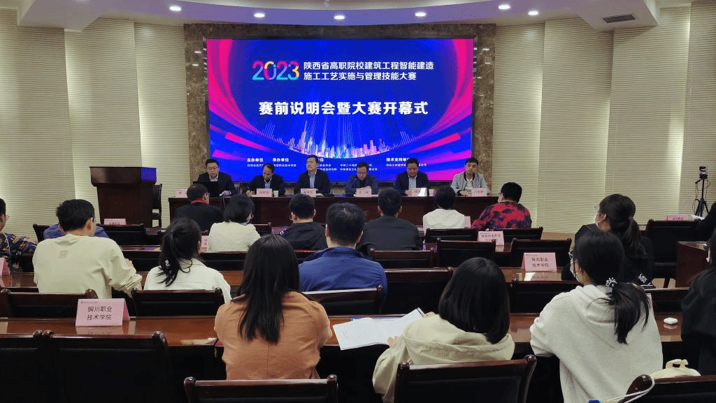 4月28日,2023年陕西省高等职业院校技能大赛“建筑工程智能建造施工工艺实施与管理”赛项在我校建筑工程学院智能建造实训中心举行,来自全省24所参赛院校47支参赛队的141名参赛选手同台竞技。大赛由省教育厅主办,我校承办,陕西省建筑业协会、陕西省智能建造研究院、中铁建安工程设计院有限公司协办,西安三好软件技术股份有限公司提供技术支持。