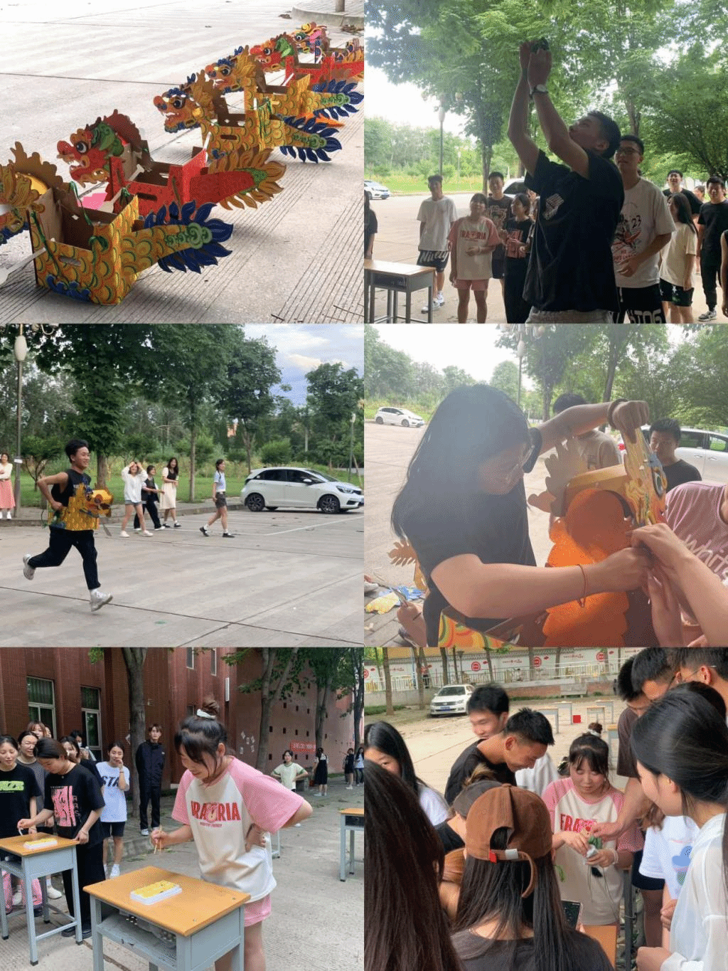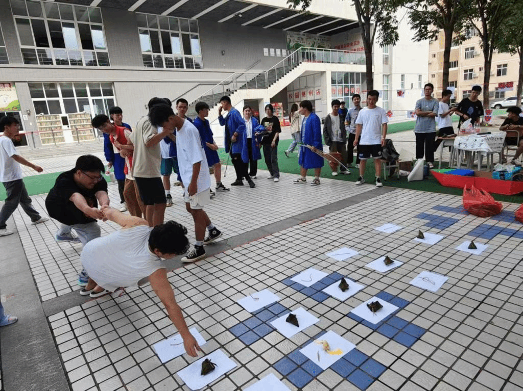 6月19日,旅游与管理学院在北校区组织开展“妙趣端午,与粽不同”端午节活动。活动包括发放粽子、粽子运输机、射五毒、粽子滚滚来、悬挂的粽子、粽子保龄球、粽子套圈、艾草香囊DIY和旱地龙舟等,让师生在活动中感受传统文化魅力。
