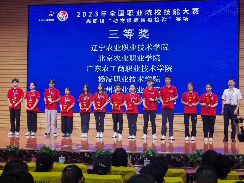 ▲7月12日至14日,2023年全国职业院校技能大赛高职组“动物疫病检疫检验”赛项在山东畜牧兽医职业学院举办,我校动物工程学院学生张思洁、史可馨荣获大赛三等奖。