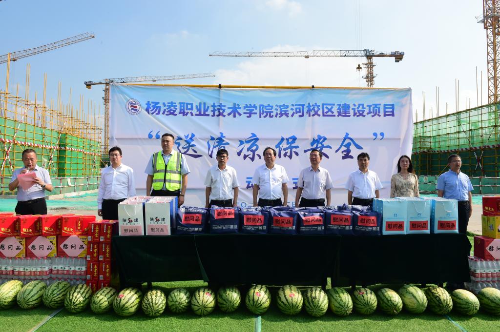 ▲8月2日,我校滨河校区开展“送清凉 保安全”慰问活动。校领导班子成员和中建西北设计院相关领导共同为奋战在一线的工作人员送去防暑降温慰问品,并叮嘱广大施工人员要注意防暑降温,保重身体,推进滨河校区项目高质量建设,为学校科学发展、跨越发展做出新的贡献。