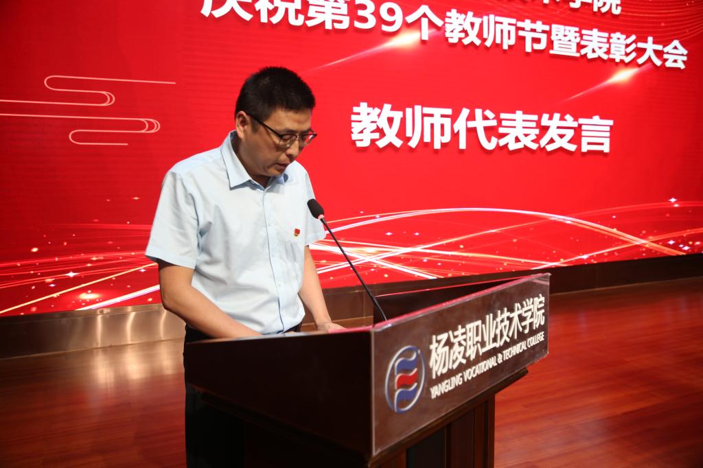 大会宣读了学校《关于颁发“光荣从教30年”纪念章及荣誉证书的决定》《关于对2021年以来成绩突出团队和个人表扬的决定》和《关于表彰2023年优秀教师优秀教育工作者的决定》,并为5名从教30年教师代表颁发了荣誉证书及纪念奖章,为优秀教师和优秀教育工作者代表颁发了荣誉证书。会上,优秀教师代表张宏、优秀教育工作者代表郭婷、成绩突出团队和个人代表李龙作了交流发言。