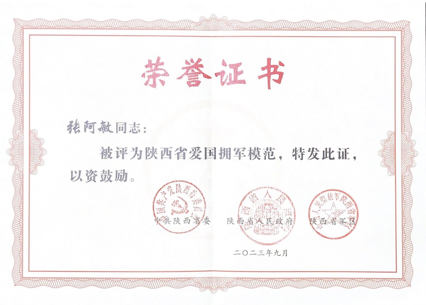 我校张阿敏老师被评为陕西省爱国拥军模范