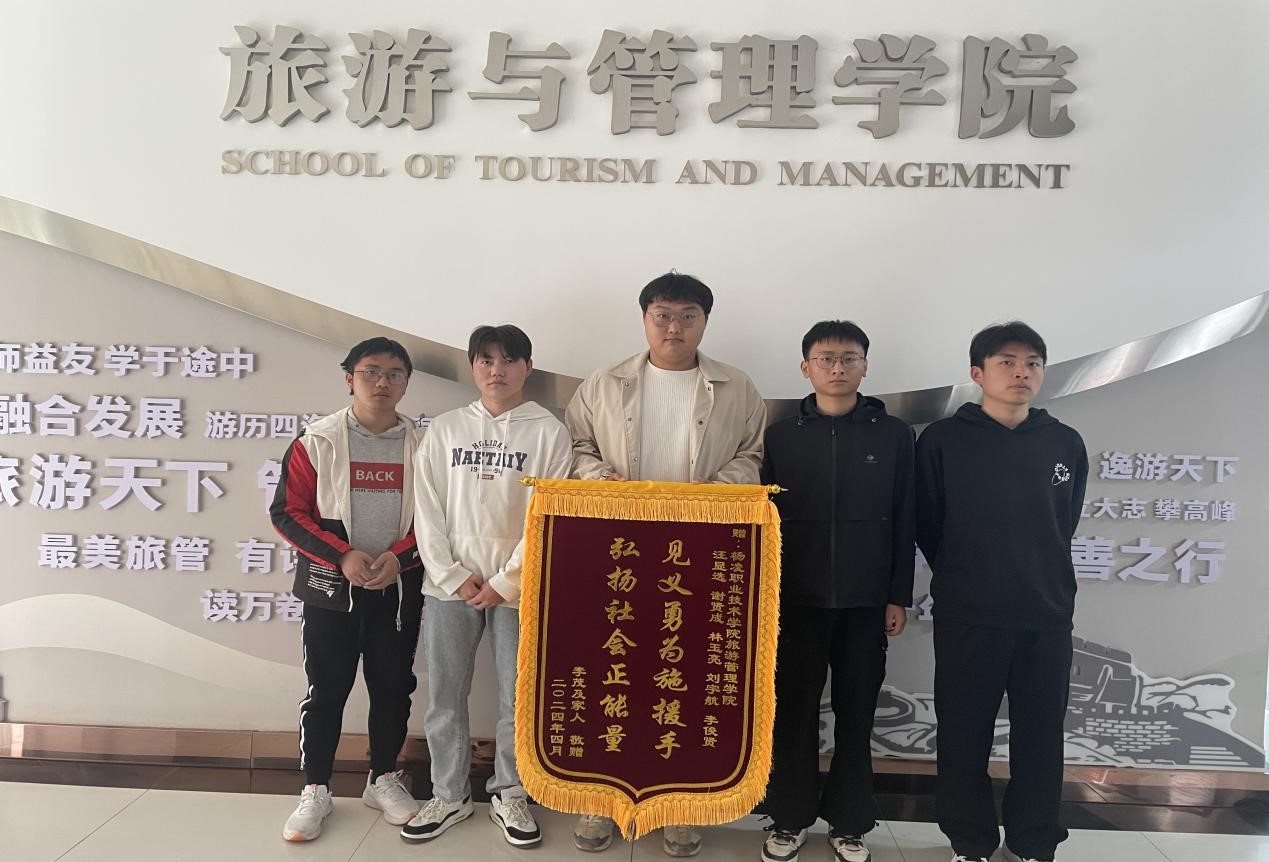 随后,李先生经多方打听,获悉五名学生为我校旅游与管理学院学生后,于49日与家属一道为学生送来“见义勇为施援手 弘扬社会正能量”的锦旗。李先生对五名学生乐于助人、挺身而出的美好行为表示万分感谢,为我校培养出优秀的新时代青年表示深深敬意。