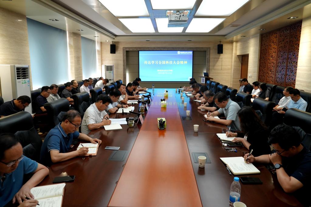 7月11日上午,学校召开专题会议,传达学习全国科技大会、国家科学技术奖励大会、两院院士大会精神。党委副书记刘瑞明,党委副书记、纪委书记王勇胜,各二级学院(部)党总支书记、院长和各处室负责人参加了会议。