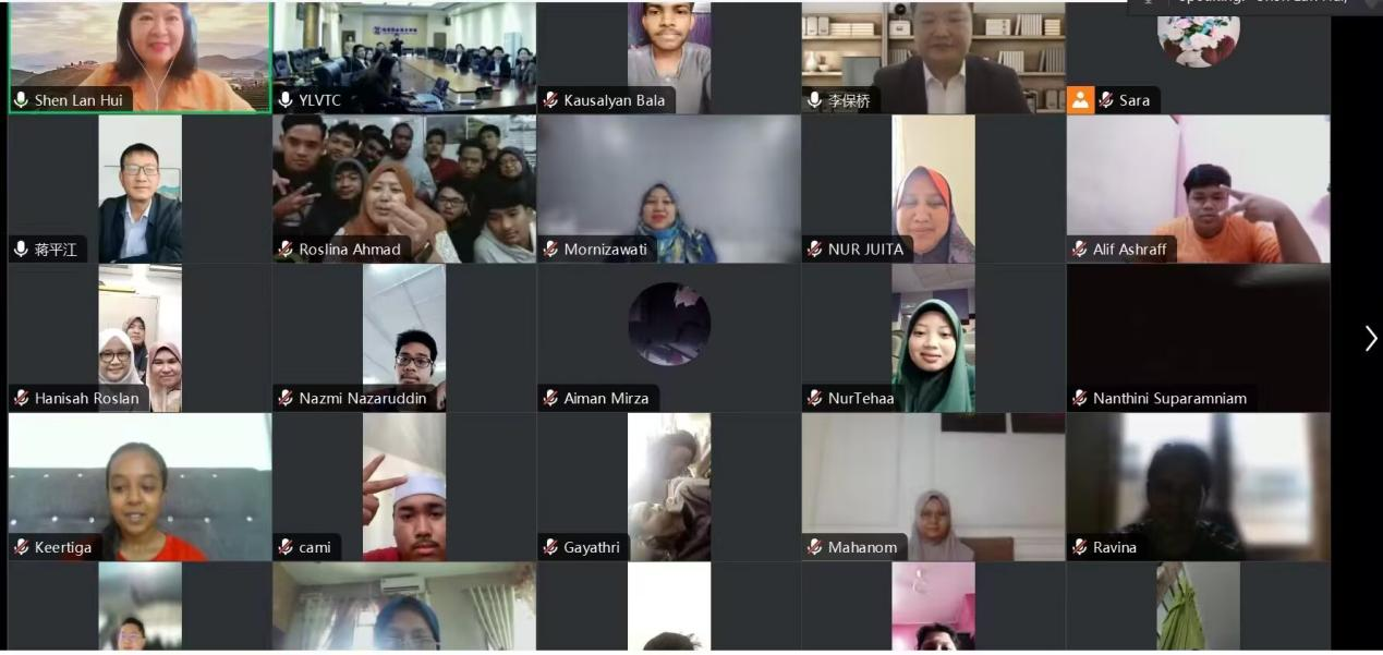 马来西亚KOLEJ KOMUNITI KUALA LANGAT(KKKL)大学100余名学员线上参加了开班式。国际合作交流处、经济与贸易学院、生态环境工程学院和水利工程学院等单位部门负责人及相关专业教师线下参加活动。