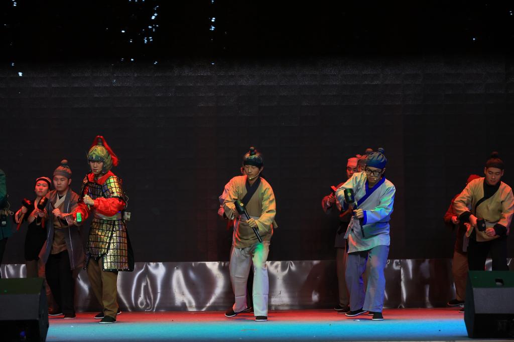 11月22日晚,陕西高校校园原创文化精品巡展巡演暨《郑国渠》舞台剧演出在南校区成功举办。党委书记韩明军,党委副书记刘瑞明,副校长祝战斌、张朝晖出席活动。各二级学院(部)负责人,全体思政课教师和学生代表共计600余人现场观看演出。