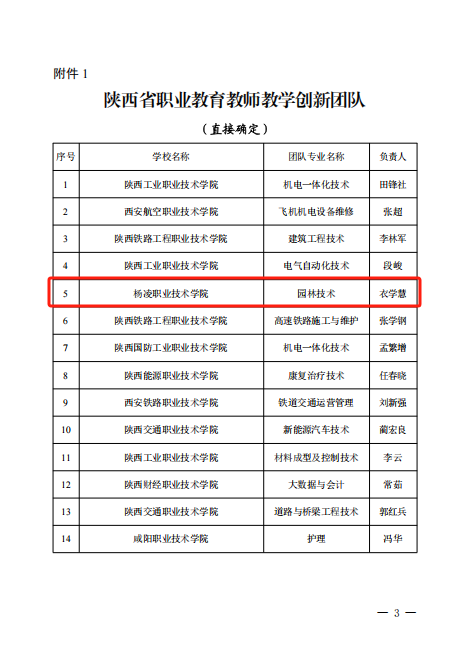 近日,省教育厅公布了省级职业教育教师教学创新团队建设名单。我校衣学慧负责的园林技术、王燕负责的农业生物技术、蒋平江负责的水利工程、陈高锋负责的计算机应用技术和周波负责的工程测量技术等5个专业团队成功入选。
