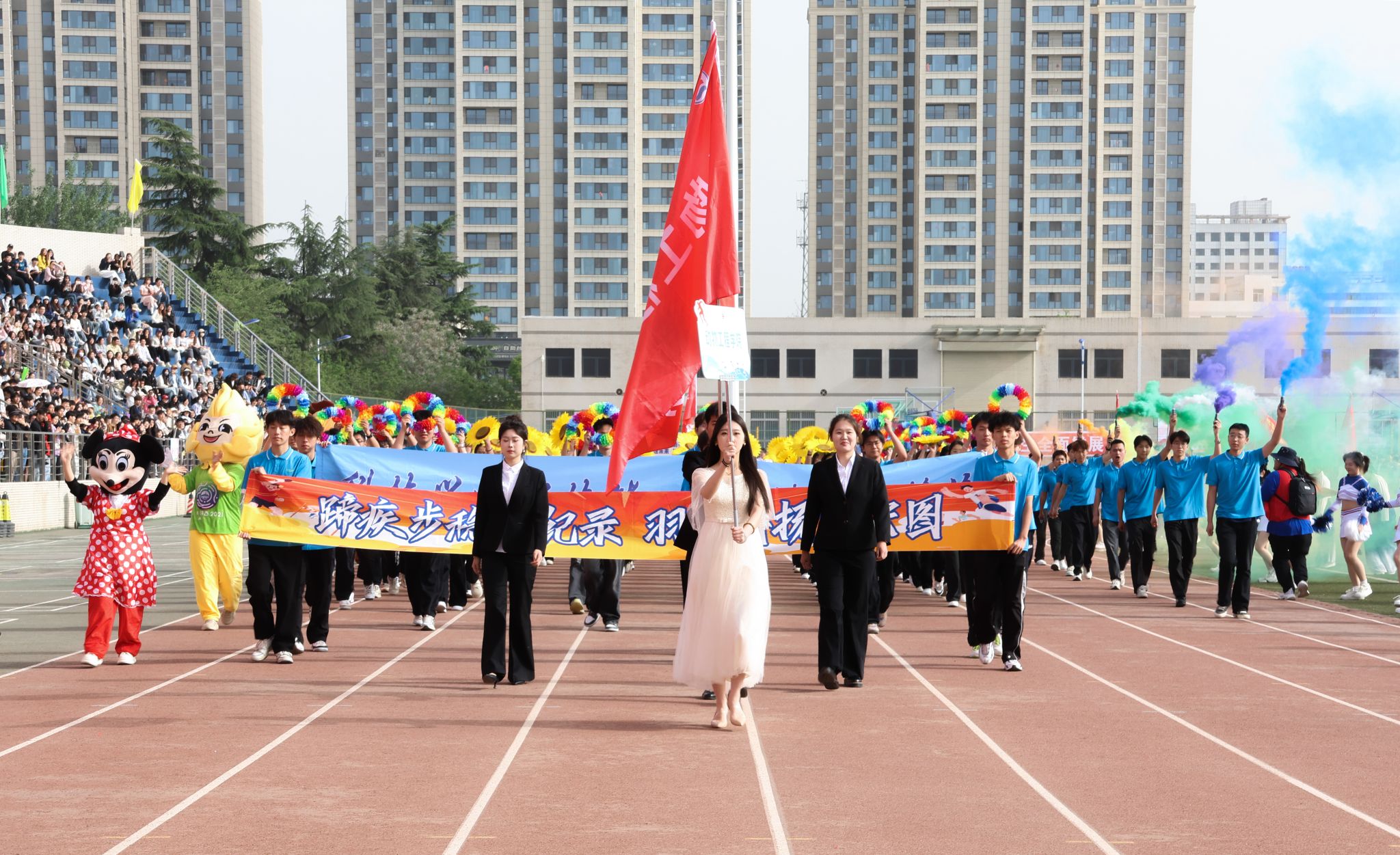 4月22日上午8点30分,伴随着气势磅礴的《运动员进行曲》,国旗护卫队、军鼓队、腰鼓方阵、花束方阵、扇子方阵、彩旗林队、裁判员方阵和各二级学院代表队依次入场。国旗飘扬,鼓声激昂,鼓点铿锵,青年学子精神抖擞、意气风发。扇子舞灵动飘逸,花束方阵尽显青春活力,广播体操表演动作规范、整齐划一。他们精神饱满、朝气蓬勃,展现着杨职人奋斗不息的深厚底蕴与敢为人先、团结协作、追求卓越的体育精神。