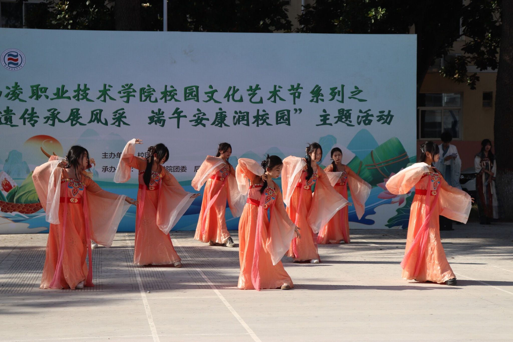 “拾艺端午”非遗技艺体验区亮点纷呈。药物与化工学院“药香廿四候”主题展区,巧妙融合二十四节气与传统中草药智慧,中药制药专业学生带领师生制作含有艾草、陈皮、丁香等中药材的特色香囊。水利工程学院、交通与测绘工程学院现场展示秦砖汉瓦拓印技艺,动物工程学院精心设置非遗缠花工作坊,建筑工程学院开展艾草养生枕制作教学,机电工程学院、旅游与管理学院设置漆扇绘制、帆布包拓印等创意项目。参与者纷纷感慨“像开启了一场穿越千年的文化盲盒之旅”。