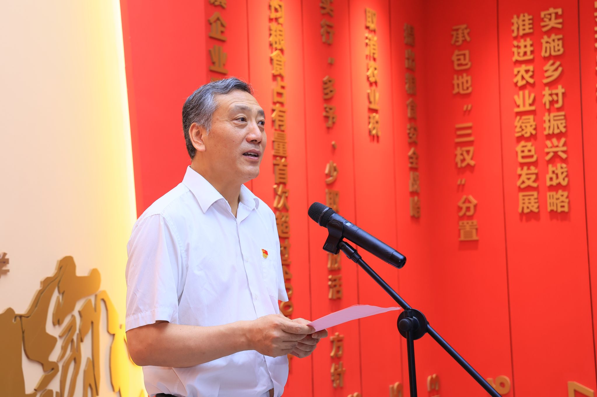 韩明军在致辞中指出,建设百年伟业·红色三农研学馆是学校深入学习贯彻习近平总书记关于“三农”工作重要论述的重要体现。他表示,学校将以研学馆为平台,教育引导广大师生深入了解中国共产党解决“三农”问题的光辉历程,厚植“三农”情怀,不忘初心使命,勇挑强农兴农重担。作为庆祝中国共产党成立100周年主题展巡展点、全省农村基层干部培训基地、杨凌示范区研学教育实践基地,研学馆将积极主动服务杨凌示范区发展,服务、辐射全省、全国旱区乃至全国党员干部、大中小学生的红色三农教育工作,凝聚更加强大的力量,为农业高质高效、乡村宜居宜业、农民富裕富足作出更大的贡献。