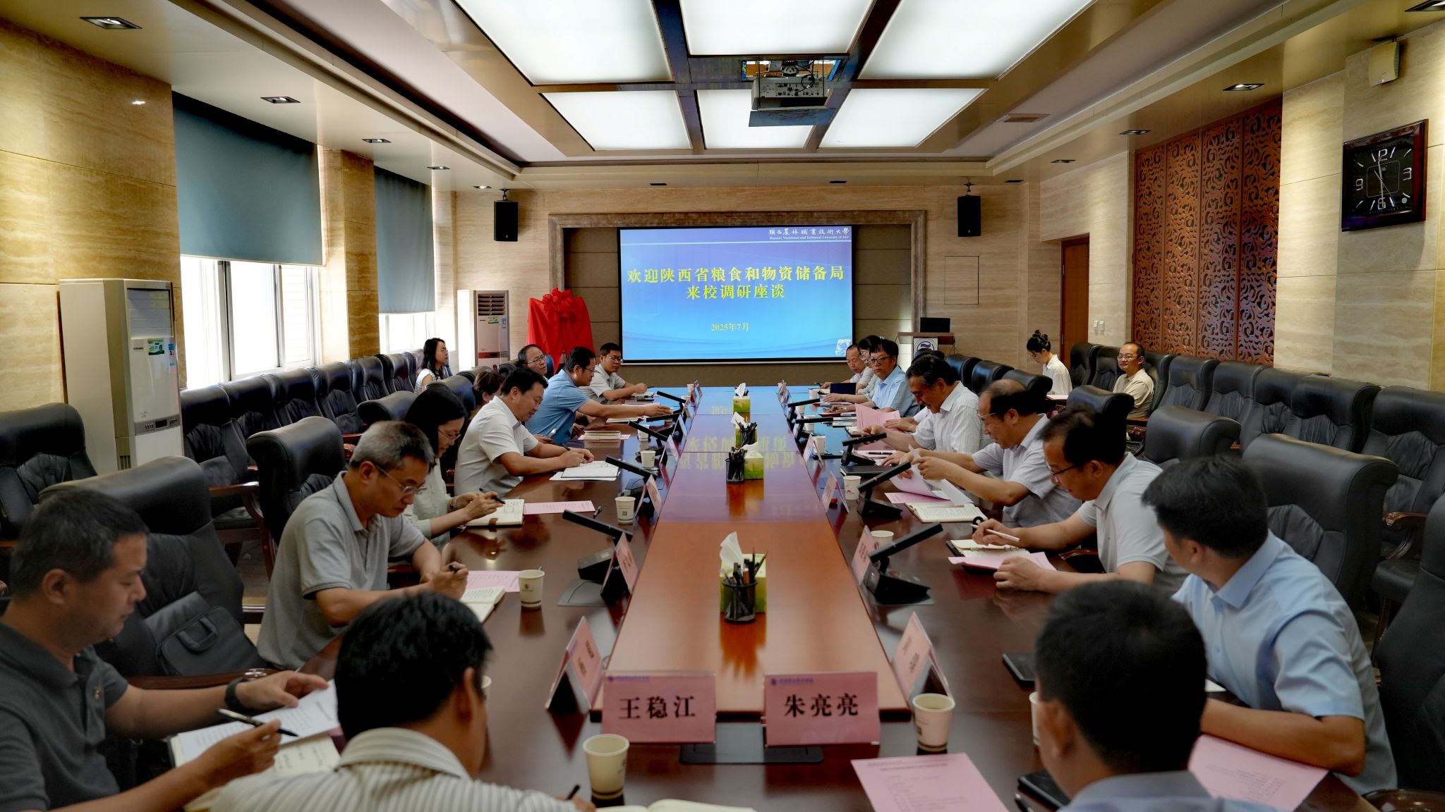 李育江表示,陕西农林职业技术大学扎根职业教育领域,培养了大批高素质技术技能人才,紧跟时代步伐,积极探索新型农业人才培养模式,为粮食安全和推动农业农村现代化发展作出了重要贡献。他强调,粮食安全是国家安全的重要基础,是国之大者,希望学校能够在粮食专业人才培养、技术技能人才培训等方面发挥优势,服务 “三农”,助力全面乡村振兴和农业强省建设。省粮食和物资储备局将积极推动校政企合作,为学校提供政策资源与有效支持,共同促进全省粮食行业和物资储备产业高质量发展。