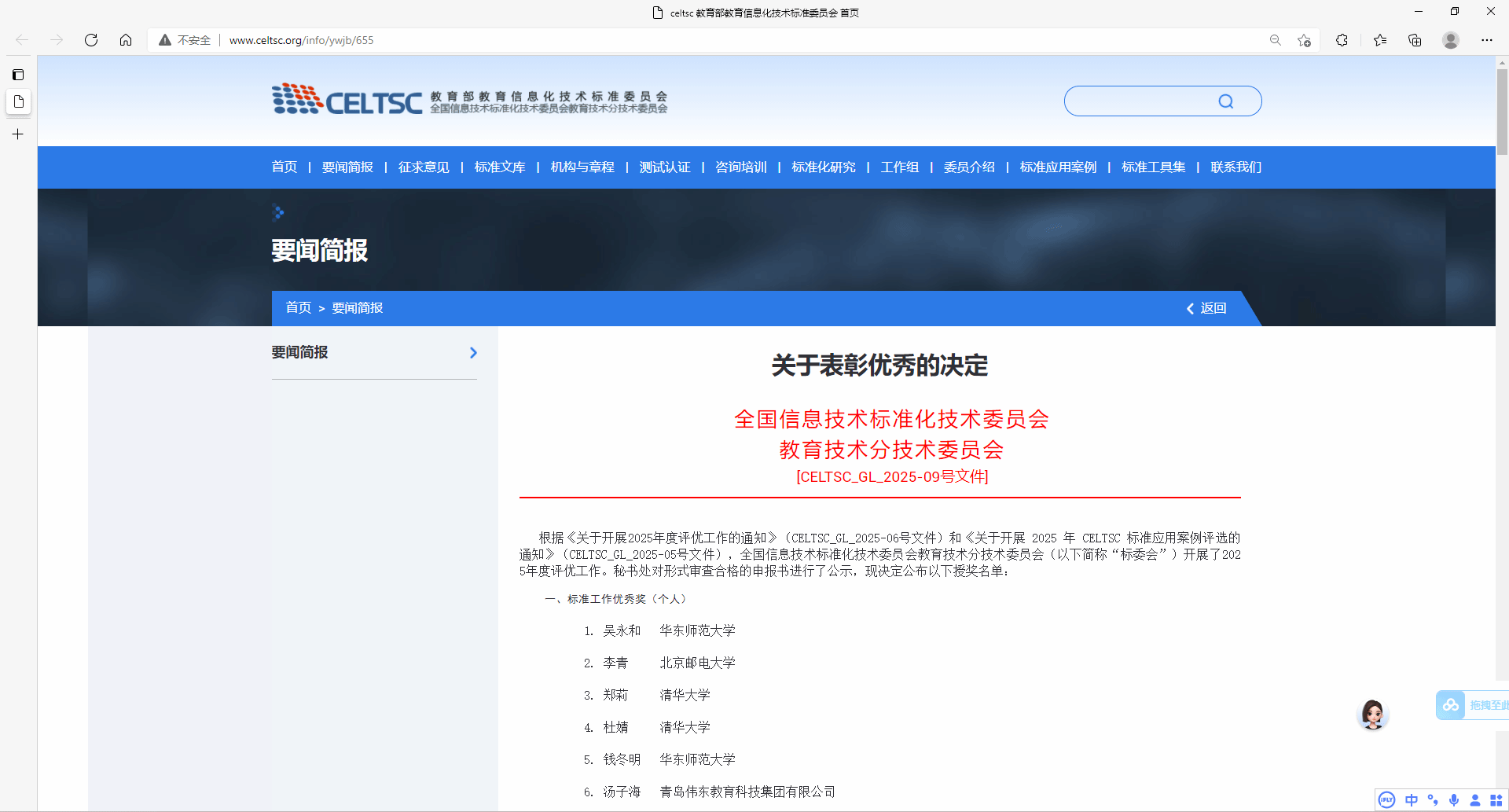 近日,全国信息技术标准化技术委员会教育技术分技术委员会(CELTSC)公布了2025年CELTSC标准应用典型案例名单,我校信息化建设与管理处申报的《AI赋能教学,驱动职业本科产教融合创新》案例成功入选。