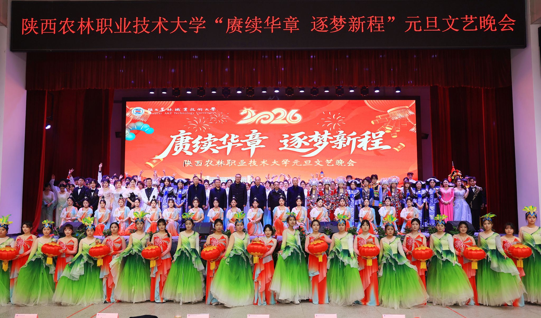 晚会节目形式多元、内容精彩纷呈,涵盖歌舞、朗诵、武术等多种艺术表现形式。开场环节,大学生艺术团以一支舞蹈《春节序曲》惊艳亮相,灵动优美的舞姿与欢快激昂的旋律完美交融,瞬间点燃全场热烈氛围。古典舞《市景欢歌》《清平乐》尽显雅致古韵,将传统美学的独特韵味娓娓道来;民族舞《弥渡山歌》《达布啊谐》充分展现出同学们对少数民族舞蹈艺术的深刻理解与扎实功底;歌曲《美丽时光》《阳光路上》《幸福永远》《我们都是追梦人》中,教师们以醇厚动人的唱功与优美的舞蹈相得益彰,尽显师者风采;朗诵节目《闪耀吧,青春的火光》情感炽烈、气势磅礴,学生们以铿锵有力的语调、饱满真挚的情感,将青春的热血与激情、理想与担当娓娓道来;武术表演刚劲有力,气势如虹,一招一式间尽显中华传统文化的磅礴魅力;合唱《上春山》节奏明快、青春洋溢,传递出陕农大学子蓬勃向上的精神力量。