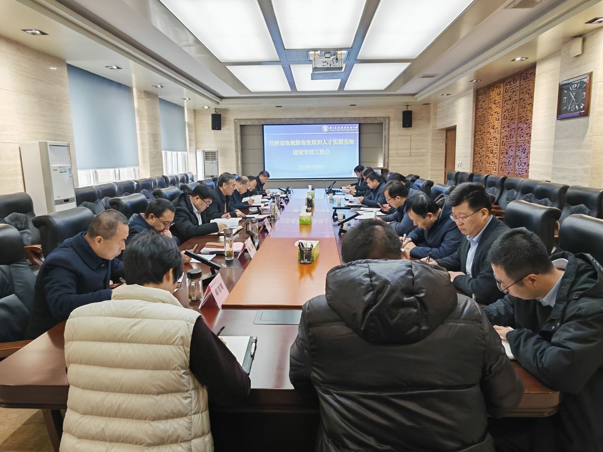韩明军强调,陕西省农机装备发展和人才实训基地建设对学校服务区域农业现代化、提升人才培养质量具有重大战略意义。该基地建设作为学校2026年重点工作之一,各部门要通力协作、加快推进,确保按期建成。