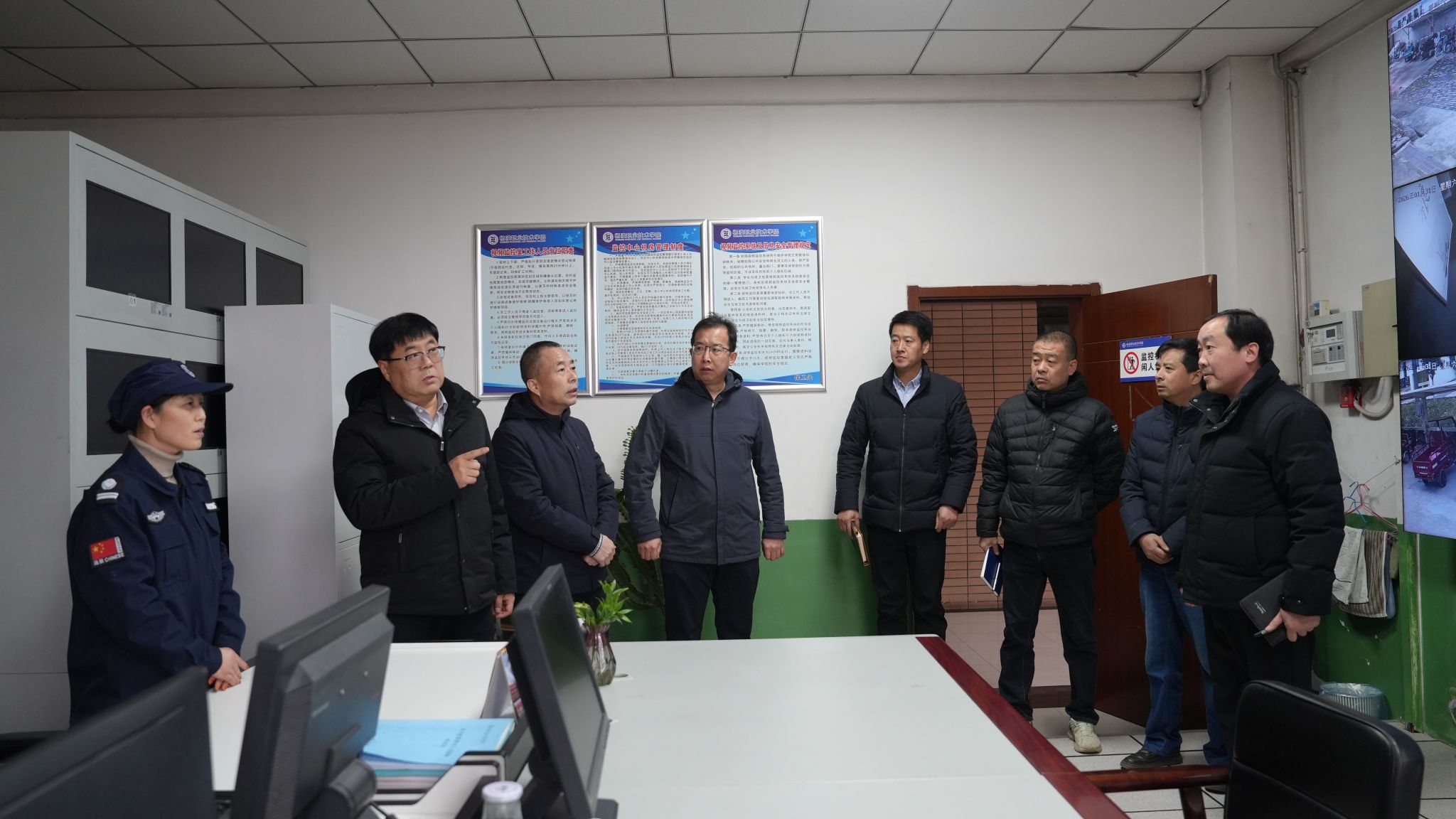 在教学实训室和实训中心,检查组重点检查了实训安全规范落实、实训仪器设备管理使用、消防器材配备使用等情况,还与备战技能竞赛的同学们亲切交流,叮嘱大家在专注备赛的同时,也要遵守实训安全操作规程,筑牢实训安全防线。在学生宿舍,检查组详细检查了学生离校登记情况、宿舍安全等,询问了国际留学生的假期学习及生活安排,要求做好留校学生外出登记等管理服务工作,保障留校学生的生活安全。在监控室、热换站、控制室、食堂等区域,检查组检查了值班值守情况。在家属院活动室,检查组叮嘱离退休老教师保重身体、安享生活,继续为学校建设发光发热。在滨河校区施工现场,检查组仔细查看了工程进度、安全防护措施及施工人员的操作规范,强调在寒假期间要确保施工安全,要求施工单位合理安排假期施工计划,确保新校区建设稳步推进,为师生入驻创造良好条件。