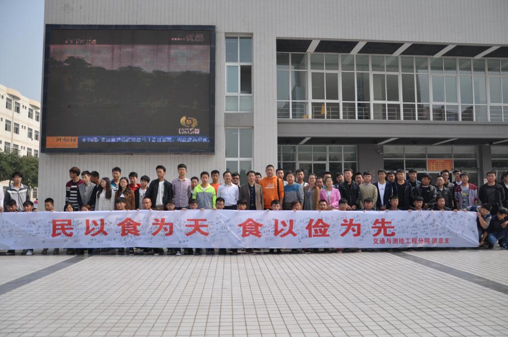 “一粥一饭,当思来之不易;半丝半缕,恒念物力维艰。”在10月16日即“世界粮食日”当天,交通与测绘工程分院在南校区水善厅前开展了“民以食为天,食以俭为先”的主题公益活动。分院领导及200余名师生参加了此次活动。