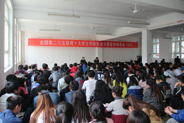 动员会上,分院负责人简要介绍了第二届互联网+大学生创新创业大赛的有关情况和大赛主旨,希望同学们积极关注和参与全国互联网+大学生创新创业大赛。此外,负责人列举了生态分院近年来的许多学生创业者的典型案例,充分肯定了他们在创业道路上的艰辛付出、顽强拼搏和勇于突破自我、敢于超越梦想信念与抱负。通过介绍分院大学生创新创业工作的开展情况和所取得的成就,鼓励同学们增强创新意识、锻炼创新能力,积极投身到互联网+时代的大潮中去,锐意进取、不断开拓,共筑创新创业之梦。