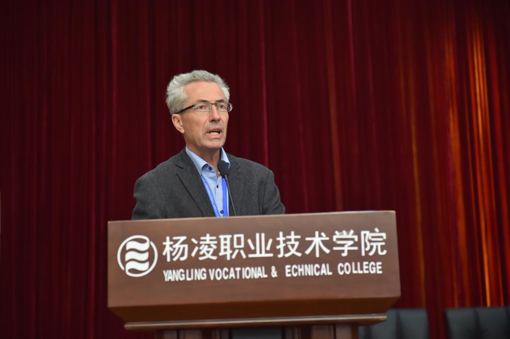10月14日,本次大会特邀专家德国国家葡萄果树栽培研究所园艺和果树栽培学院院长、德国果树栽培生产力提高学习研讨会主席Franz Ruess教授,为我院园艺技术专业学生、教师和参加本次大会的相关兄弟院校参会代表作了题为“德国苹果生产与职业教育发展”的专题报告。Franz Ruess教授从德国苹果生产、德国果农需要具备的知识和技能、德国农业就业资格体系及双元制培训等方面详细介绍了德国苹果产业与职业教育发展的密切联系,同时,与我院相关专业教师进行了互动交流,对我院园艺技术专业人才培养具有很好的借鉴意义。