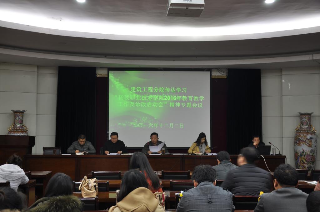 建筑工程分院:12月2日下午,建筑工程分院在水韵楼二楼报告厅召开专题会议,传达学习“杨凌职业技术学院2016年教育教学工作暨诊改启动会”精神,分院全体教职工参加了本次会议。会议由张小林副院长主持。会后,分院领导、各教研室主任、教师代表及学生代表重点围绕学院三位领导的报告和讲话等相关内容进行了讨论。分组讨论中,大家踊跃发言,结合工作实际提出了进一步提升学院教学质量、促进教学工作改革的意见和建议,查找反思教学工作中存在的突出问题,探求解决问题和谋求发展的思路和方法,并就信息化教学在日常教学中的合理应用发表了各自的看法。
