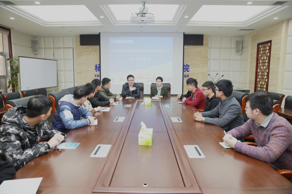 汇报会结束后,考察组专家查看了我院就业创业有关资料,与学生代表进行了座谈交流,并参观了园林景观设计、水环境监测与治理、室内设计创新创业工作室和大学生创业基地、种植园创新创业基地等。