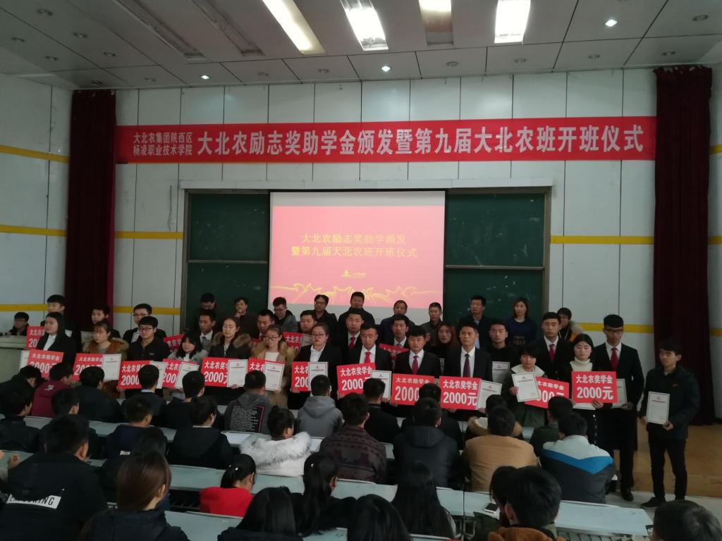 12月25日下午,大北农励志奖学金暨第九届大北农班开班仪式在西校区台阶教室举行,为动物工程分院和生物工程分院的25名优秀学生每人颁发了2000元大北农励志奖学金。大北农集团陕西区总经理宋安石,动物工程分院、生物工程分院负责人,订单班学生以及学生代表350余人参加了奖学金颁发与开班仪式。