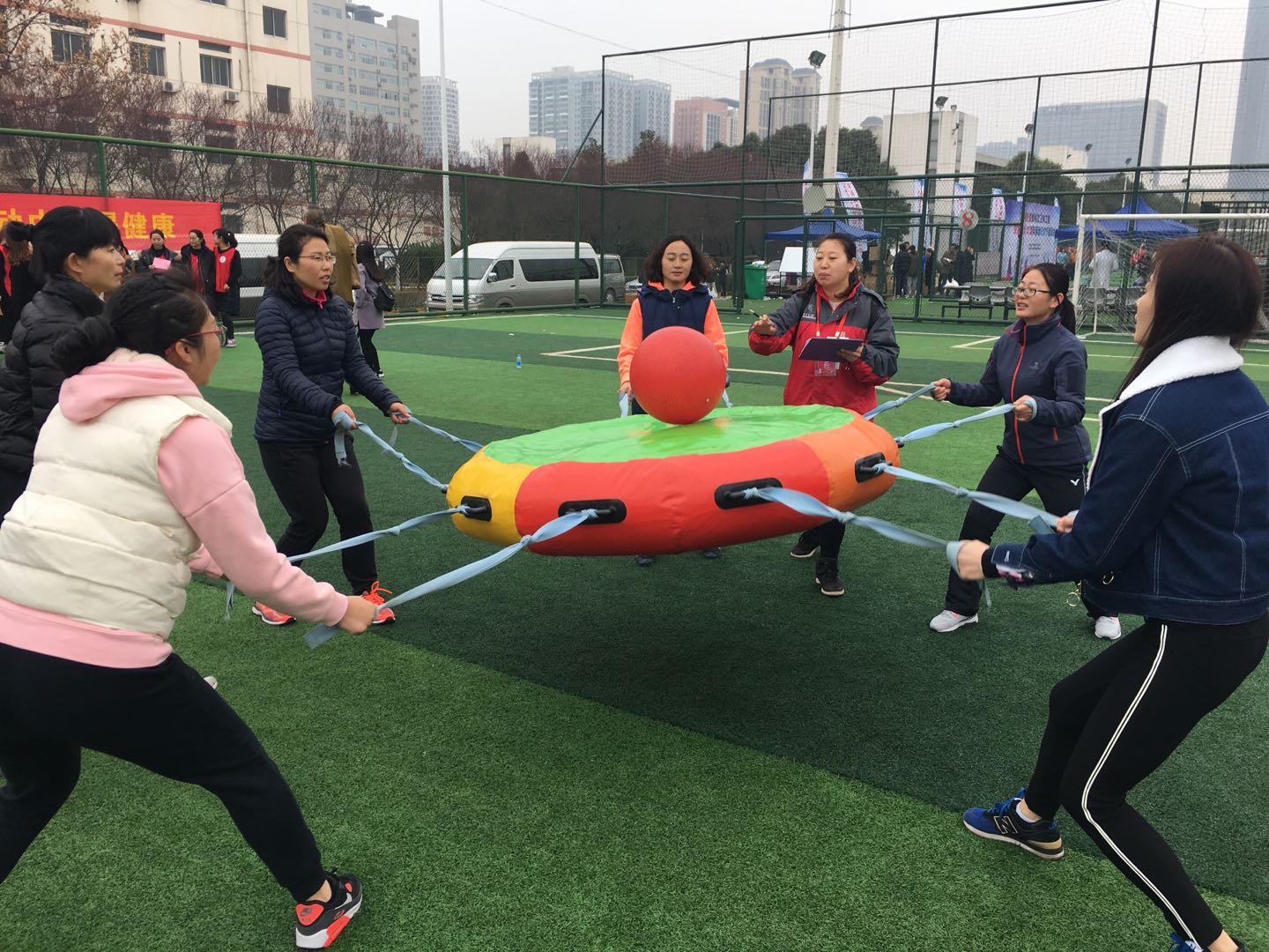 此次运动会共有全省高校、职业院校等58支参赛队伍的450余名女职工参加,活动共设有龟兔赛跑、智传呼啦圈、众星捧月和指压板接力赛四个趣味项目,集娱乐性、趣味性、协作性和竞争性于一身。我院参加运动会的女职工们,奋勇向前,在比赛中享受欢乐、团结,展示了我院女教工积极向上的精神风貌。