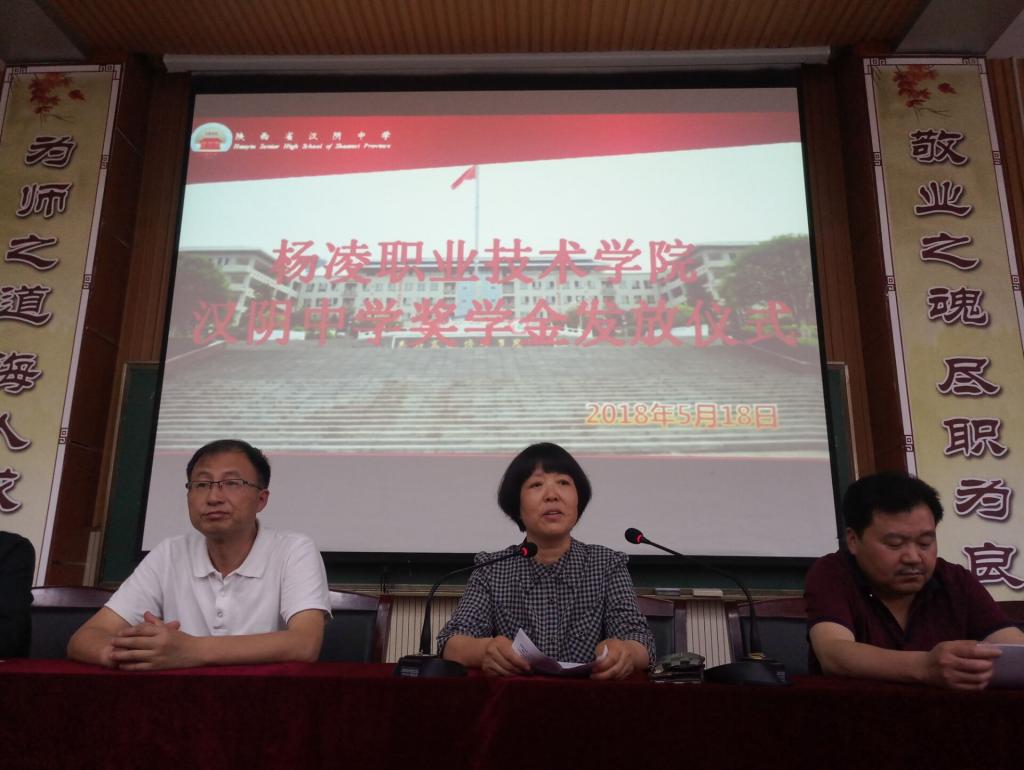近日,我院分别在汉中市洋县第二高级中学、安康市汉阴中学举行奖学金发放仪式。学院纪委书记刘粉莲,招生就业处、文理分院负责人出席仪式,并为获奖学生颁发了荣誉证书和奖学金。
