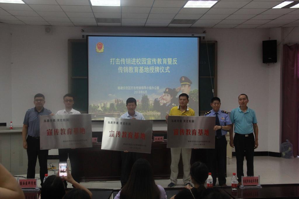 近日,杨凌示范区打击传销进校园活动暨大学生反传销宣传教育基地成立仪式在我院举行。会上,示范区打击传销领导小组授予我院大学生反传销“宣传教育基地”牌。