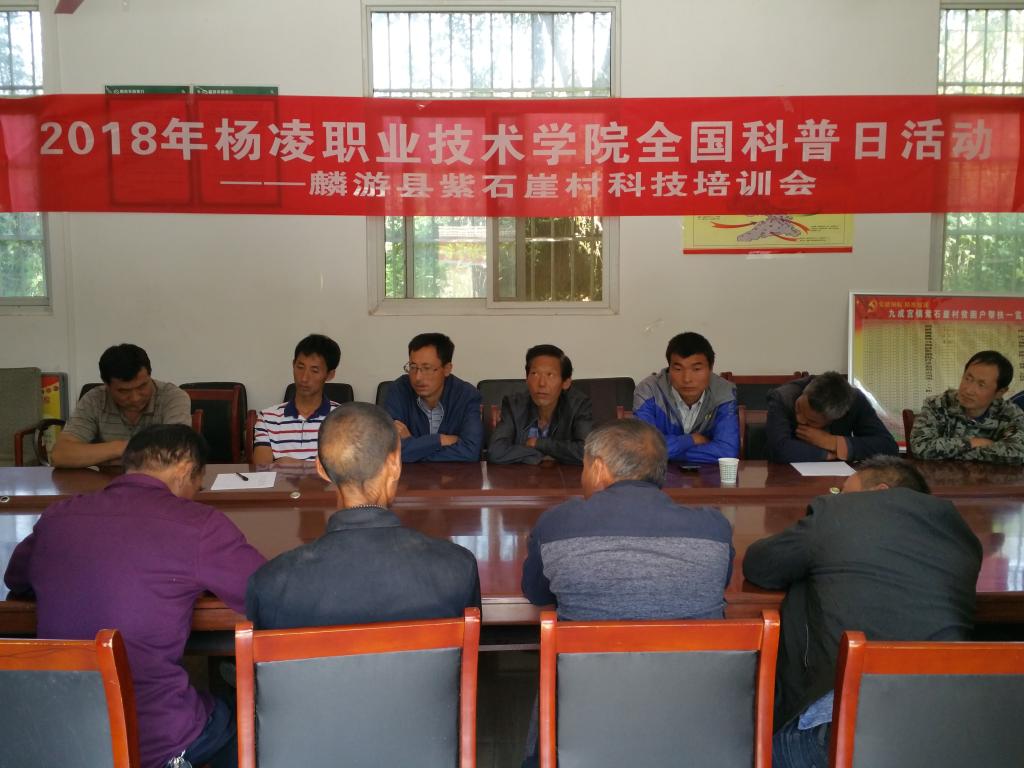 为落实省科协等部门通知精神,在2018年陕西省全国科普日活动在全省集中开展其间,9月18-19日,学院科研推广处扶贫办赴我院“双百工程”联系县麟游县九成宫镇紫石崖村,开展了为期两天的“生猪健康养殖”与“中蜂秋冬季管理和常见病预防”科技培训。