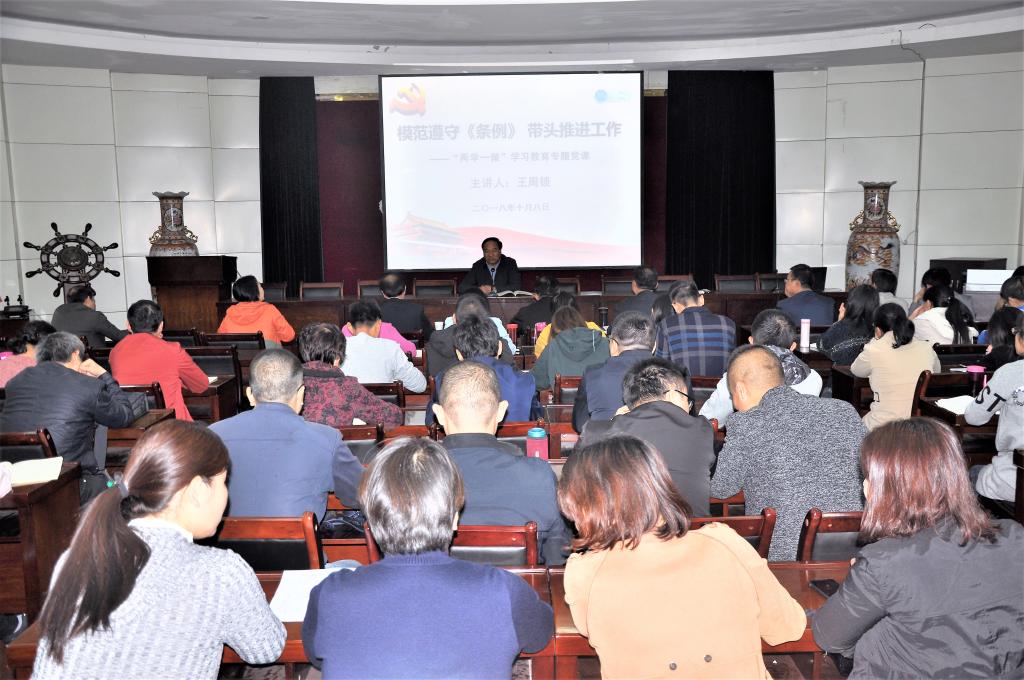 在学院全面贯彻落实党的十九大精神,认真学习贯彻《中国共产党纪律处分条例》,“两学一做”学习教育常态化制度化向纵深推进之际,10月8日下午,学院党委副书记、院长王周锁在水韵楼二楼报告厅为建筑工程分院和药物与化工分院教工党员和全体教职工作了题为《模范遵守<条例> 带头推进工作》的党课。建筑工程分院和药物与化工分院班子成员及教工党员和教职工100余人参加了党课学习。党课由建筑工程分院党总支副书记主持。