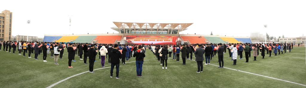 学院党委宣传部、学工部、保卫部、院团委、思政课教学部等部门负责人,各党总支书记、各分院学工办主任、思政课教学部全体教师,以及2018级学生代表共1000余人参加了活动。