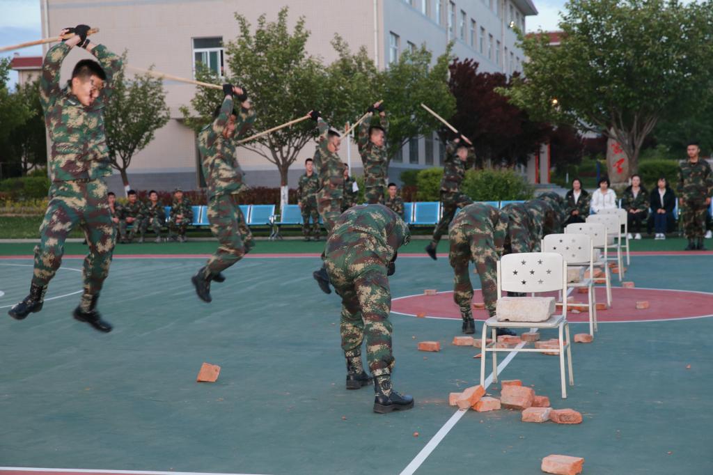 晚上7点30分,夜幕降临,一场以“激扬青春、绽放精彩”为主题的联谊演出拉开帷幕,匕首操、盾牌操、气功表演,战士们干净利落、气势威武的开场表演,瞬间点燃了全场师生和官兵们热情。随后学院30多名师生为官兵们演唱了《我和我的祖国》、《不忘初心》等歌曲,战士们表演了小品《爱的牵挂》、相声《业余时间》、舞蹈《多面人》等节目,现场气氛热闹,笑声掌声不断。