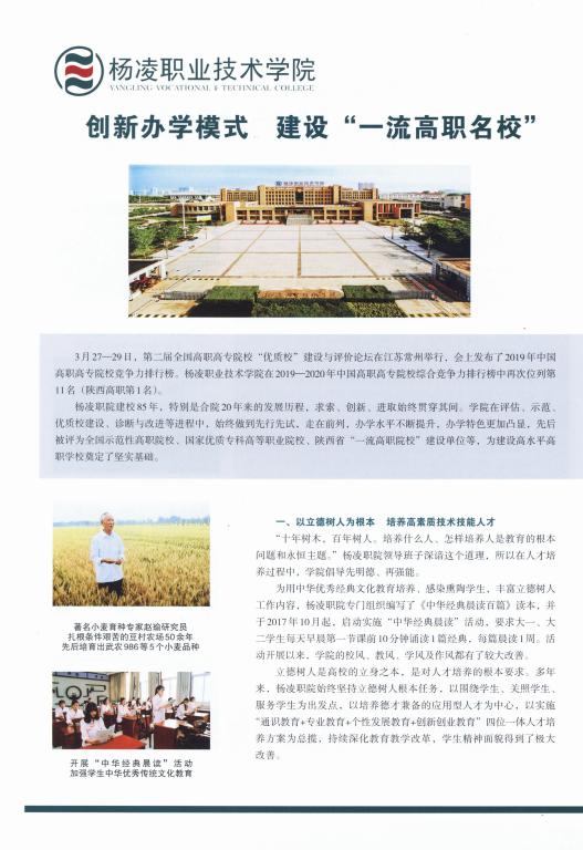 【中国职业技术教育】杨凌职业技术学院:创新办学模式 建设“一流高职名校”