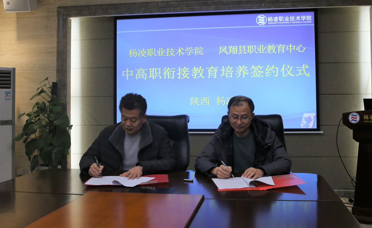 12月24日上午,我校与凤翔县职业教育中心“中高职衔接教育培养协议”签订仪式在醒钟楼208会议室举行。我校校长王周锁,党委副书记任得元,招生就业处处长袁军儒,凤翔县职业教育中心副校长张建忠、黄静波参加签约仪式。