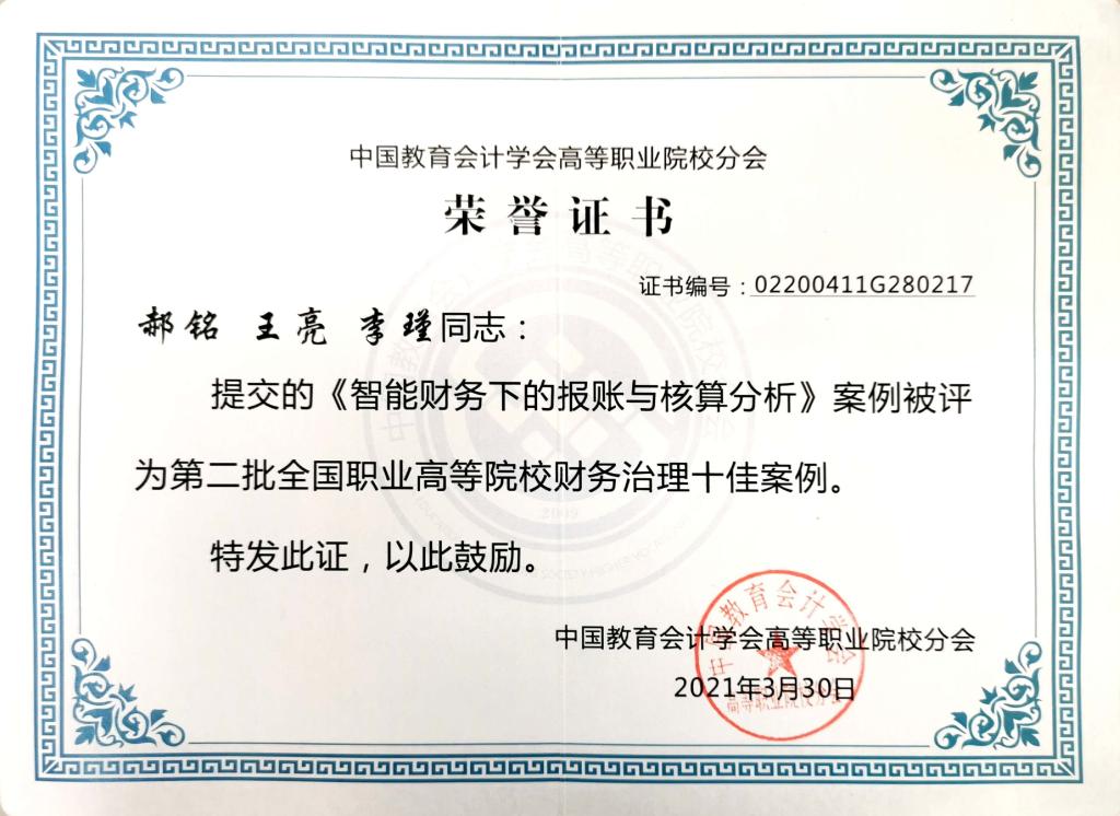 我校财务治理案例入选全国职业高等院校财务治理十佳案例