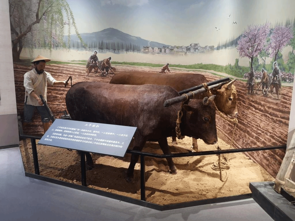 耕耘树艺展厅通过农耕嬗变、泽被华夏、六畜兴旺、锦绣华章和兴农之光五个篇章,集中展示了我国古代农业技术发展、水利设施建设、家禽家畜变迁、纺织技术演变和近代农业机构发展历程。