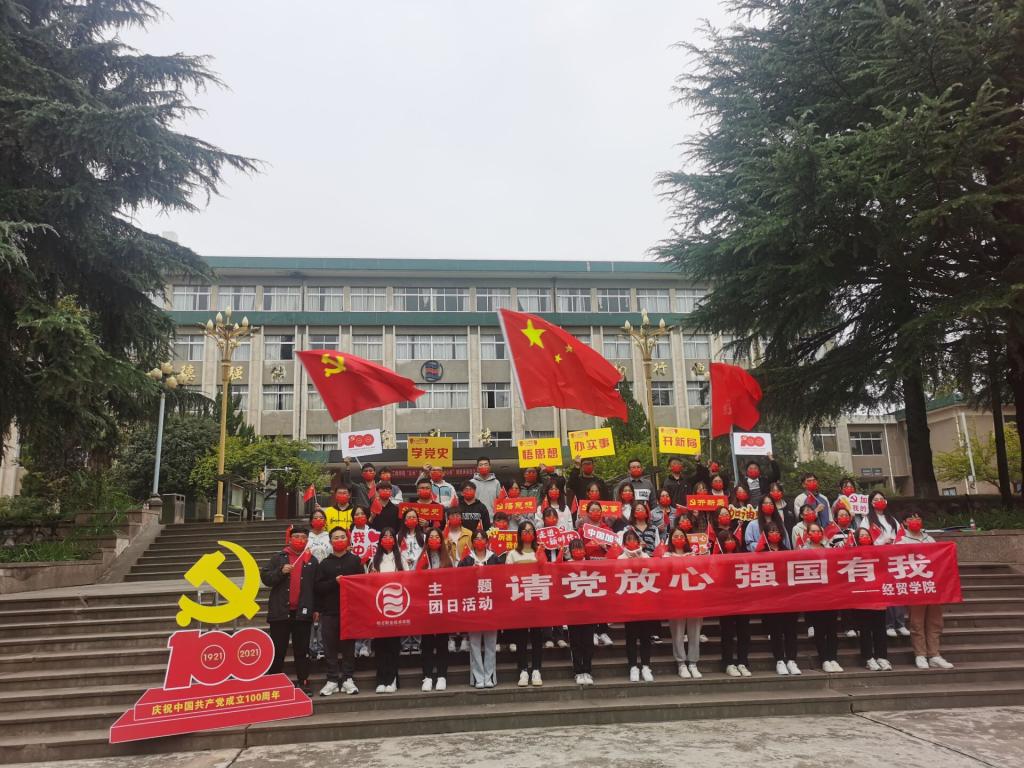 ——开展“请党放心 强国有我”主题团日活动。组织各班团支部在国庆节前后开展党史学习教育之“请党放心,强国有我”主题团日活动,以习近平总书记在榆林考察期间的重要讲话、建党百年庆典上青年代表集体朗诵视频、优秀党员代表的纪录片等为主要内容,采取学习研讨、分组汇报、主题演讲、诗歌朗诵、视频鉴赏、感悟分享、素质拓展等多种形式进行,使广大团员青年在重温历史的苦难与辉煌中,更加坚定为共产主义事业奋斗终身的信念,永远感党恩、听党话、跟党走。