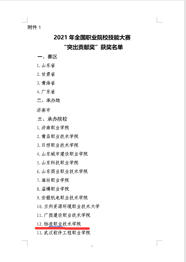 近日,全国职业院校技能大赛执行委员会公布了2021年全国职业院校技能大赛“突出贡献奖”、“优秀工作者”和“优秀裁判员”获奖名单,我校荣获“突出贡献奖”,生物工程学院副院长王燕被评为“优秀工作者”。