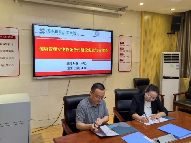 5月30日,药物与化工学院联合西北农林科技大学医院、长安科美品牌管理有限公司、陕西中科善益康健康管理有限公司、麦塔维斯健康科技有限公司等单位,召开健康管理专业校企合作建设促进与交流会。