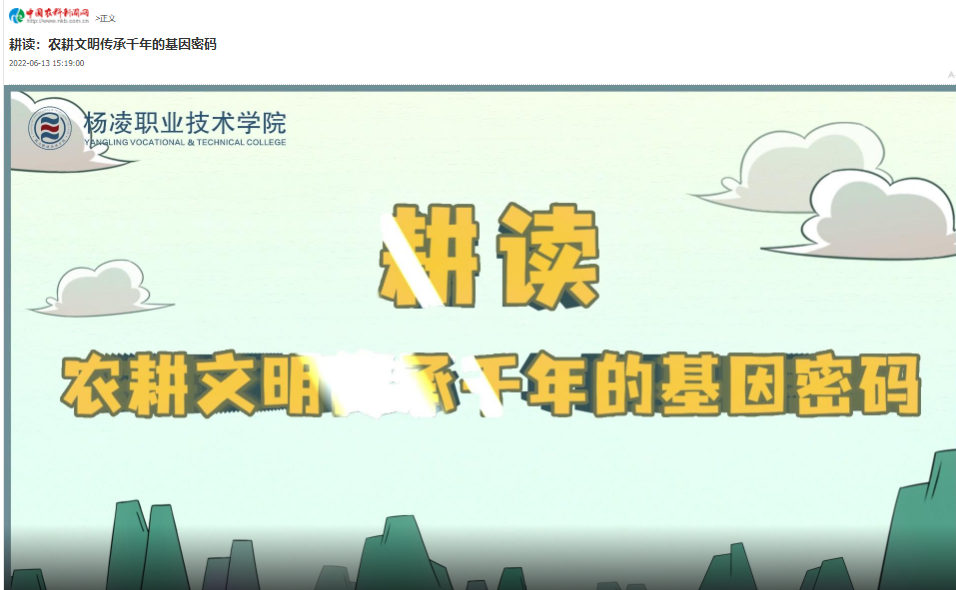为贯彻落实教育部关于加强和改进涉农高校耕读教育工作方案,大力培养知农爱农新型人才,杨凌职院经过策划、制作,重磅发布动画宣传片《耕读:农耕文明传承千年的基因密码》,弘扬后稷文化,构建“力耕勤读”的全方位耕读教育体系,为乡村振兴赋能助力。