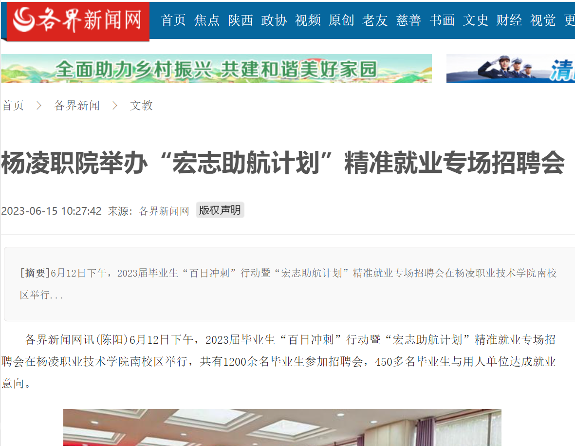 下一条:【中国网】杨凌职院举办“宏志助航计划”精准就业专场招聘会