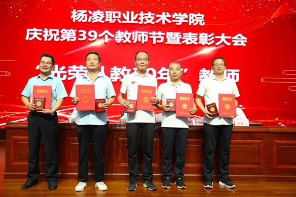 9月8日下午,杨凌职业技术学院庆祝第39个教师节暨表彰大会在南校区思辨堂举行。党委书记王周锁,党委副书记、纪委书记王勇胜,副校长蒋平江、胡俊鹏,受表彰教师代表,各二级学院教师代表,各二级学院(部)党总支书记、院长(主任),机关处室负责人参加了大会。大会由王勇胜主持。