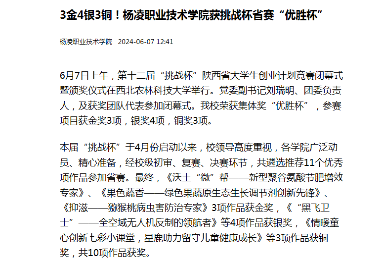 【陕西头条】3金4银3铜!杨凌职业技术学院获挑战杯省赛“优胜杯”
