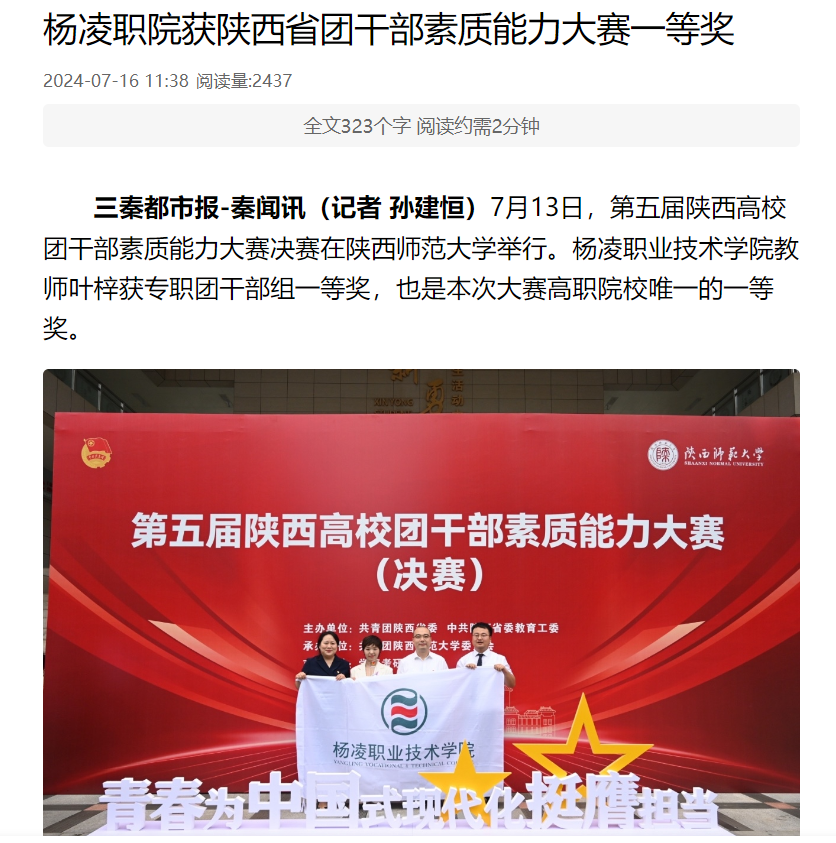 下一条:【阳光报】杨凌职院获陕西省团干部素质能力大赛一等奖