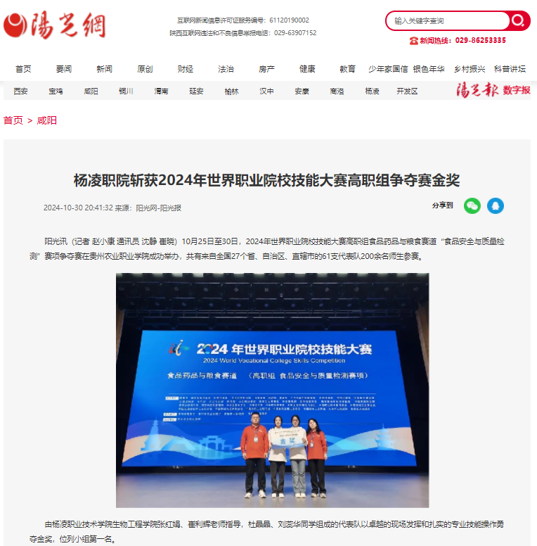 上一条:【群众新闻网】杨凌职业技术学院荣获世界职业院校技能大赛“食品安全与质量检测”赛项金奖