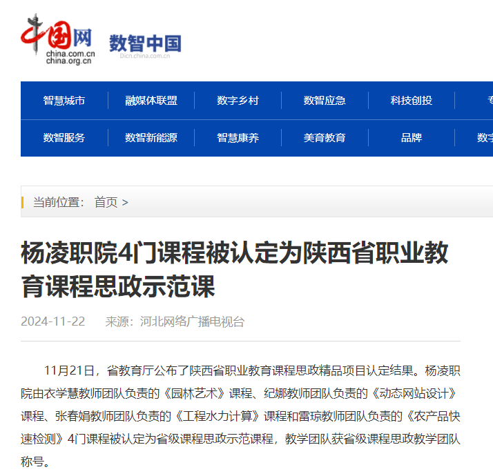【中国网】杨凌职院4门课程被认定为陕西省职业教育课程思政示范课