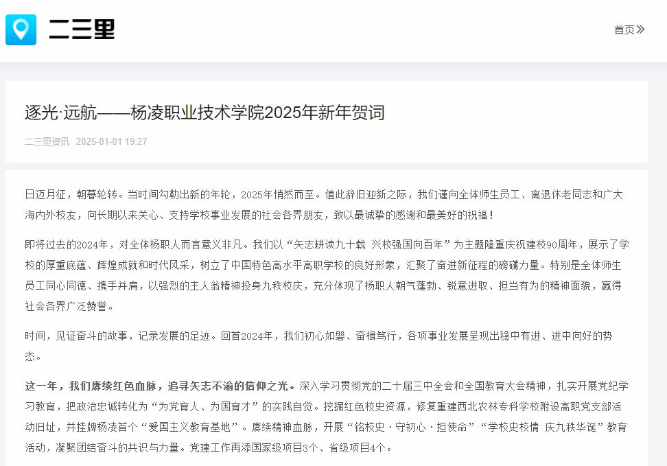 最后,衷心祝愿全体杨职人新年快乐、阖家幸福!祝愿杨凌职业技术学院宏图更展、再谱华章!